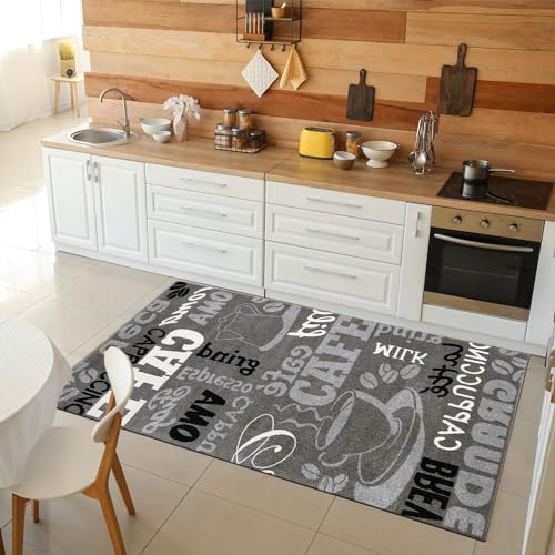 VIMODA Köksmatta grå trendig kaffematta, olika teckensnitt och mönster kaffe, mått: 160 x 220 cm