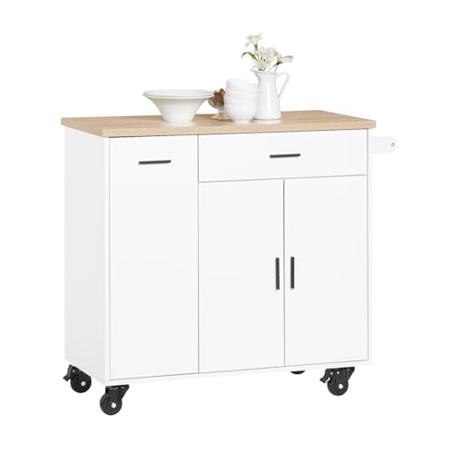 SoBuy , Köksö på hjul, Förvaringsskåp med Klaffbord, Arbetsbord Kök, FKW71 (Vit)