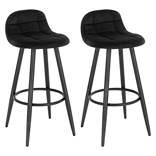 WOLTU barstol set om 2, barstol kökspall, hög pall med ryggstöd och fotstöd, tillverkad av sammetsmetall, för barer, diskar, bistroer, svart, BH296sz-2