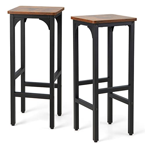 COSTWAY Set med 2 barstolar, diskstolar med fotstöd, barstolar vintage, bistropall upp till 150 kg, kökspall för hem, bistro, matsal