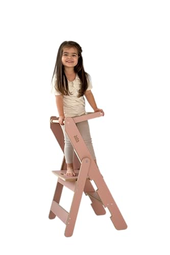 Hjälpa-till-pall, hopfällbart lärotorn av trä, kökstorn, kökspall för barn, litet Montessori-lärotorn (rosa)