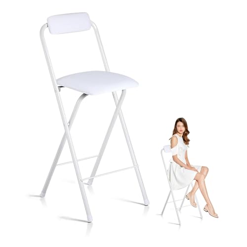 60/65cm Fällbara Kökspall med Bekväm Rygg, Ingen Montering, 70/75cm Bärbar Hopfällbar Barstol för Vuxna, Kontor, Bistro(75cm/30in)
