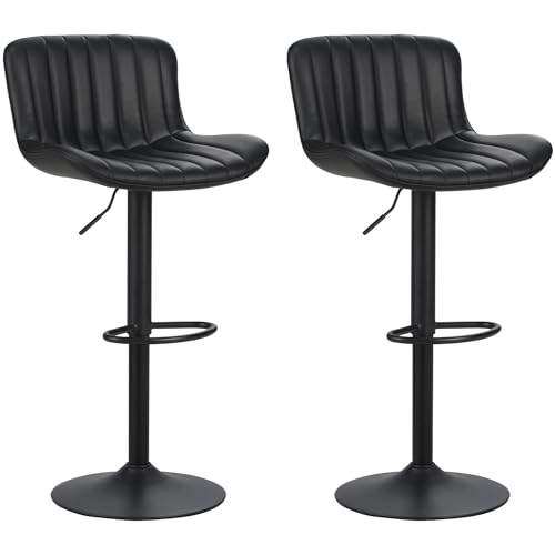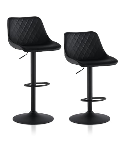 Brigros We Home Set med 2 justerbara höga barstolar i konstläder, 360° roterbar kökspall, pall med ryggstöd och fotstöd, pall med svart metallbas (svart)
