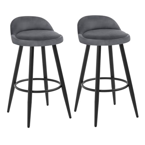 WOLTU Barstol set om 2, barstol med sammetsöverdrag, vadderad kökspall, med ryggstöd och fotstöd, designpall, diskpall, sitthöjd 70 cm, mörkgrå BH364dgr-2