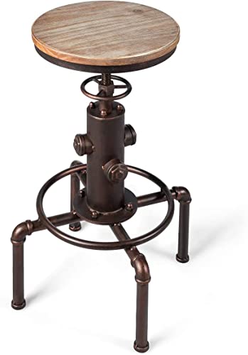 COSTWAY barstol höjdjusterbar, 59,5–75 cm, barstol av trä och metall, diskpall med fotstöd, tallplatta, vintage bistropall, industripall kökspall för restauranger, kaféer