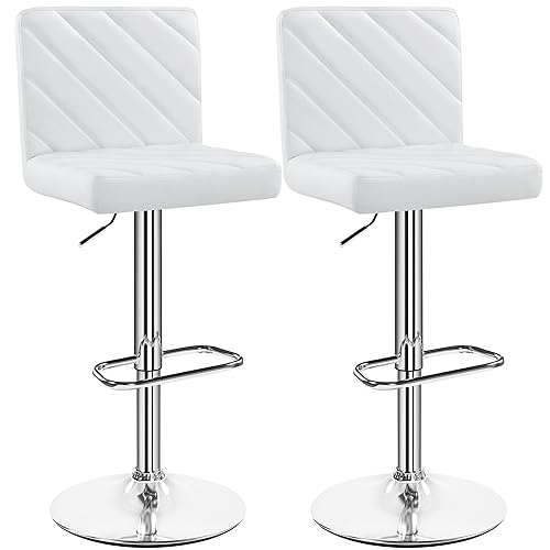 Yaheetech Barstolar, set om 2, konstläder, vadderad barstol med fotstöd, snurrpall kökspall, diskpall som kan belastas upp till 136 kg, för kök/matsal/bar/salong, vit