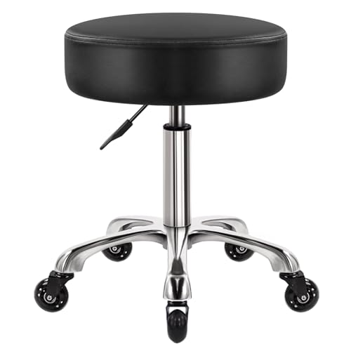 WKWKER Kraftig skönhetspall på hjul svängbar justerbar pall tjockt läderstol för kökspall utarbetande laboratorier kontor massagepall svart