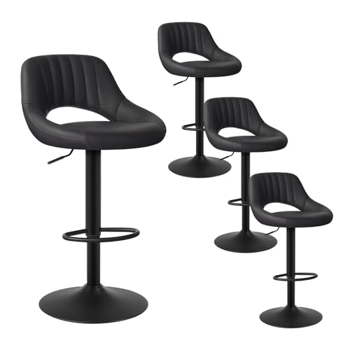 EUGAD Barstolar set om 4, kökspall med lädersits och metallben, antracit, 0666BY-4