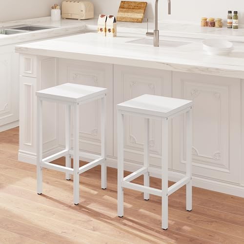 EUGAD Barstol, 2 barstolar, kökspall, skattpall, industriell pall med fotstöd, för bar matsal kök salong, av trämaterial metall, vit, 1058BY-2