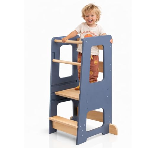 KYWAI Småbarns kökspall, kökstorn småbarn, stegpall för barn, Montessori-design, justerbar till 3 höjder med dubbel säkerhetsskena – från ett trädplanteringsmärke som stöder renovering