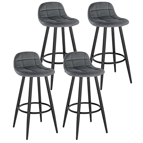 WOLTU Barstol set om 4, barstol med sammetsöverdrag, vadderad kökspall, med ryggstöd och fotstöd, designpall, diskpall, sitthöjd 70 cm, mörkgrå BH364dgr-4