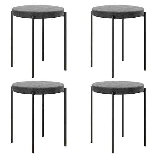 HOMCOM Matrumspall, set om 4, stapallar, metallpall med sammetsoptik, kökspall, klädpall för matsal, vardagsrum, mörkgrå