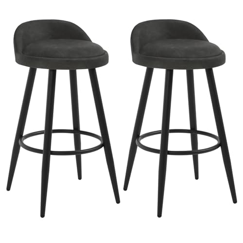 Yaheetech Barstolar, set om 2, konstläder, vadderad barstol med fotstöd, snurrpall kökspall, diskpall som kan belastas upp till 136 kg, för kök/matsal/bar/salong, mörkgrå