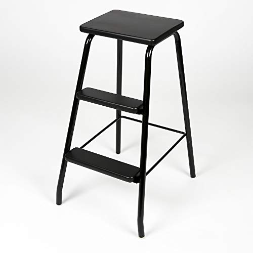 LM 184 kökspall med 3 steg i massiv björk, stålrörsstomme, stegpall 3 steg, liten pall, kökspall, trappsteg, svart stomme