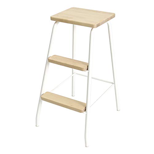 LM 184 kökspall med 3 steg i massiv björk, stålrörsram, stegpall 3 steg, liten pall, kökspall, trappsteg, björk/vit ram