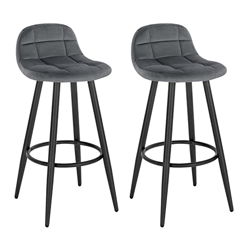 WOLTU barstol set om 2, barstol kökspall, hög pall med ryggstöd och fotstöd, tillverkad av sammetsmetall, för barer, diskar, bistroer, mörkgrå, BH296dgr-2