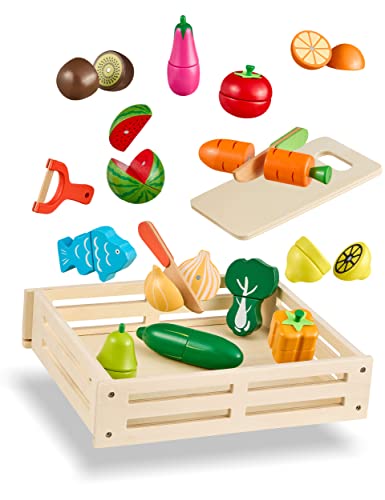 Smartwo träleksak för fruktskärning, maträtter för låtsaslek, kökstillbehör för barn, present till pojkar och flickor 3+ år