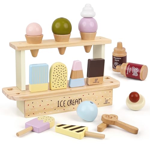 Little Log träglass leksak för barn rollspel butik träleksak efterrätt småbarn låtsas leka matset barn kökstillbehör 3 år gamla flickor pojkar gåvor