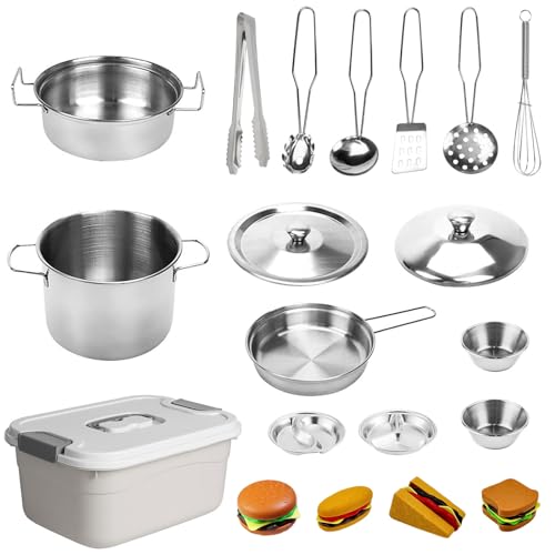 Forbabe 20 stycken lerkök, tillbehör, rostfritt stål, barnkök, utomhustillbehör, köksleksaker, lekkök med förvaringslåda, kökstillbehör för krukor, köksredskap barn