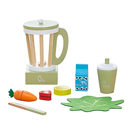 Teamson Kids TK-W00008 Liten kock Frankfurt trämixer lek kökstillbehör – grön-13 st, grön