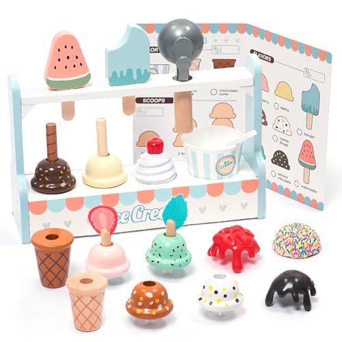 Mamabrum träglassbutik för barn från 3 år och uppåt, lekset för glassaffär, kökstillbehör, lekmat, rollspelsleksaker - kock, säljare