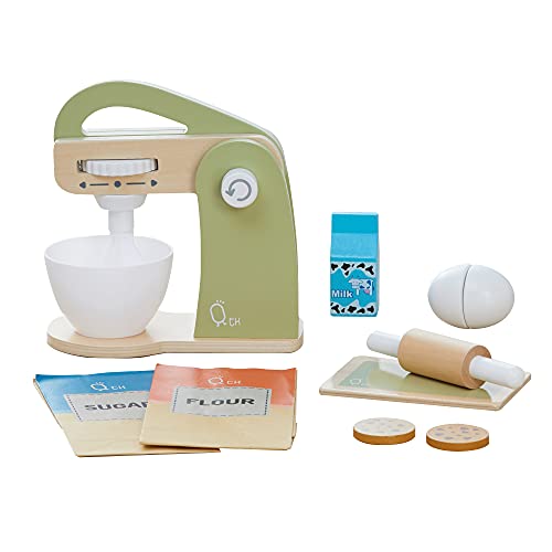 Teamson Kids TK-W00007 Liten kock Frankfurt träblandare lek kökstillbehör – grön-10 st, grön