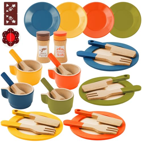 Donmills 28 st träkakstillverkare leksak kökstillbehör, barn lek kök skärning och bakning matleksaker kakor bageri lekset, småbarn låtsas leka leksak matset pojkar och flickor födelsedagspresent