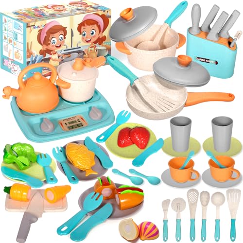 JEDWKFA 48 stycken barnkökstillbehör, lekkökstillbehör, lerkök barn utomhus, kökstillbehör barn, rollspelsservis barnkök, julklapp för åldrarna 3 4 5 år