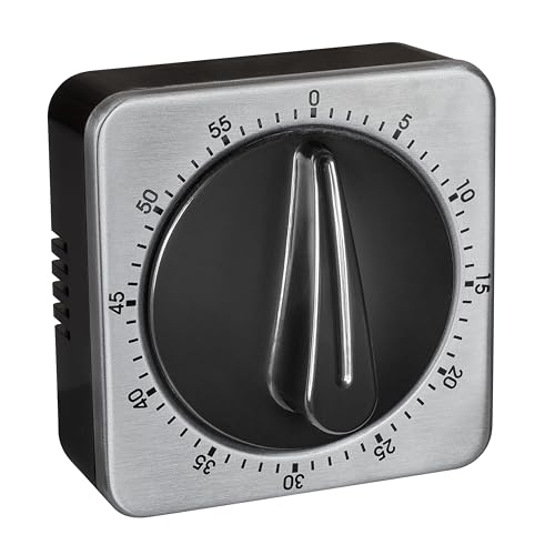 FISHTEC - Mekanisk och magnetisk kökstimer - rostfritt stål, tidsvisning med ljudlarm, timer, matlagningstimer, skola, klassrum - 60 minuter (svart, liten)