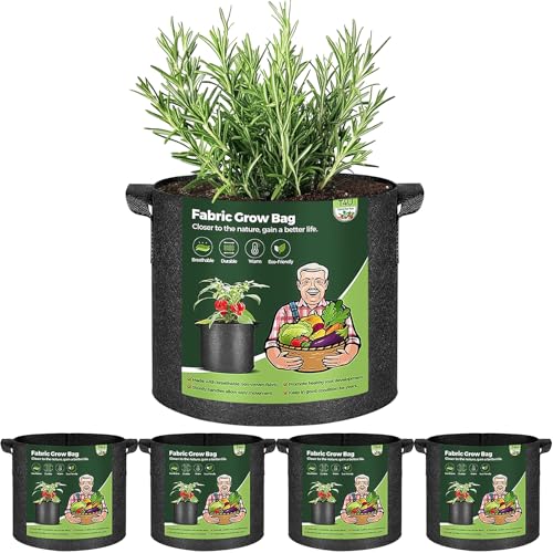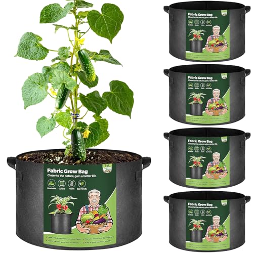 T4U Set med 5 st 37L, odlingssäckar för familjer och nybörjare, enkel odling av tomater och potatis, odlingssäckar för grönsaker för köksträdgård, balkong eller trädgård