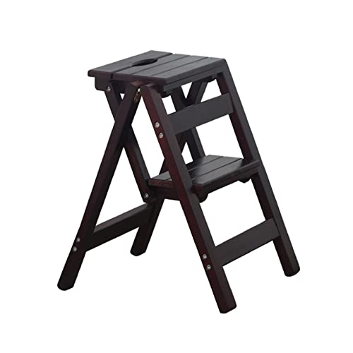 Trä 2-stegs trappstege pall, multifunktionellt bibliotek trappsteg Bokhylla Display Hyllor Stegar Stol Skobänk Blomsterställ för köksträdgård (Färg : Svart)