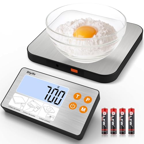 Diyife Delad köksvåg i rostfritt stål, 2025, senaste köksvågen 15 kg livsmedelsvåg digital våg med bakgrundsbelyst LCD-skärm, vätsketätning, räkningsfunktion, batterier ingår