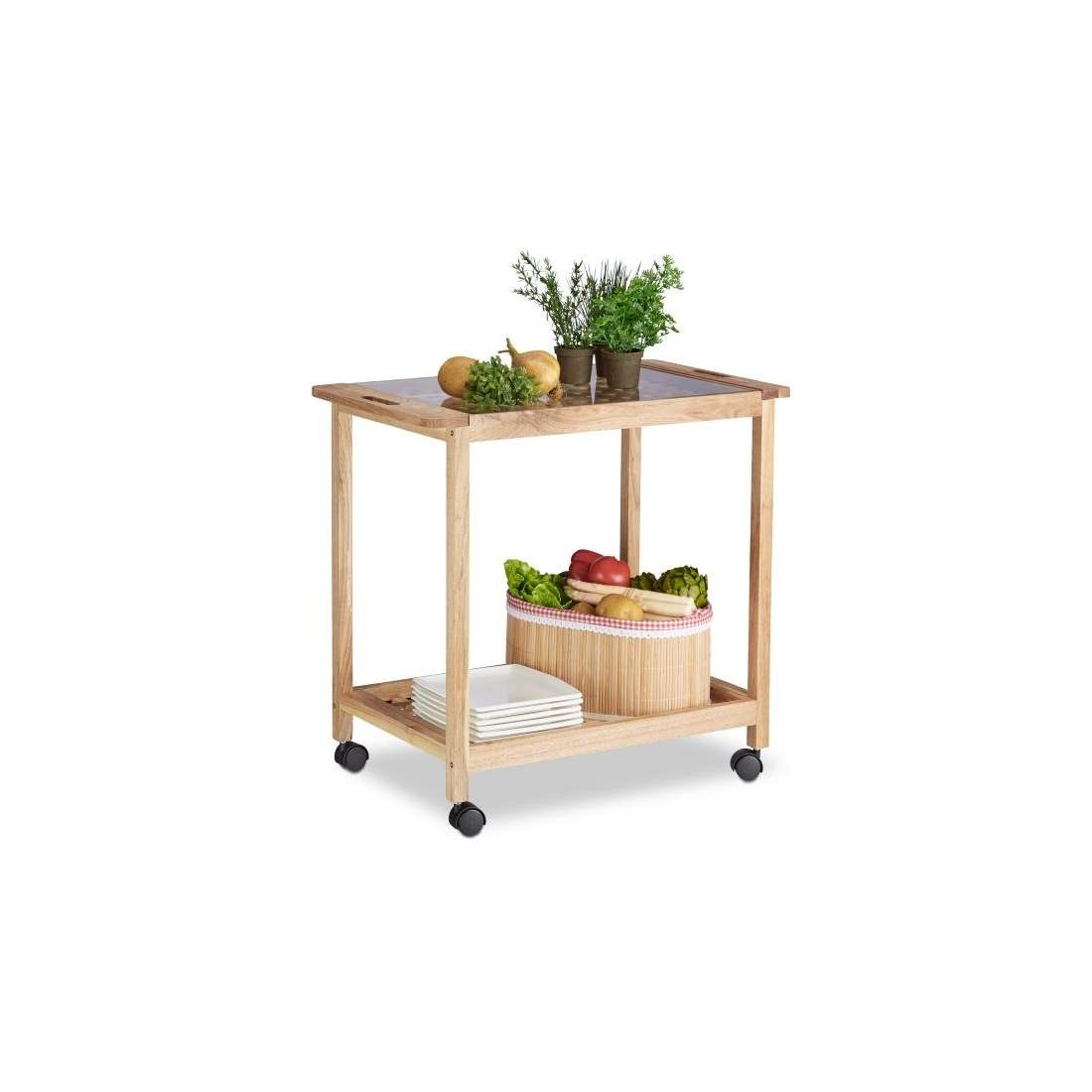 Relaxdays bambu köksvagn, bänkskiva, skåp och korg, serveringsvagn på hjul, HWD: 82 x 59,5 x 35 cm, naturlig