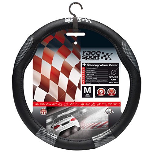 Carodi Kolfiber läder bil ratt skydd, bekväm och halkfri, universell 15 tum (svart)