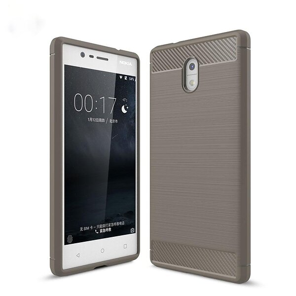 Nokia 3 Skal TPU Borstad Kolfiber Grå