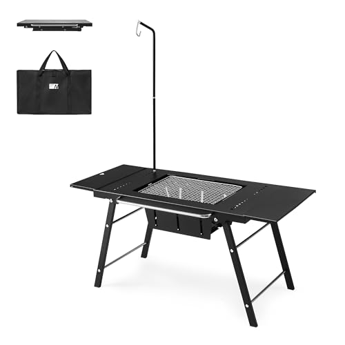 Naturehike Bärbart IGT-bord med kolgrill, fällbart campingbord och grill, levereras med bordsförlängning och lyktstativ, perfekt för utomhusgrillning, camping, matlagning, resor, picknick