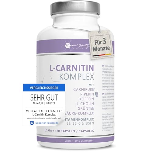 180 kapslar av L-karnitinkomplex med Carnipure® – med grönt te, koffein och piperin – Veganska L-karnitinkapslar högdoserade för normal metabolism med kolin, lysin, vitamin B3, B6, C.