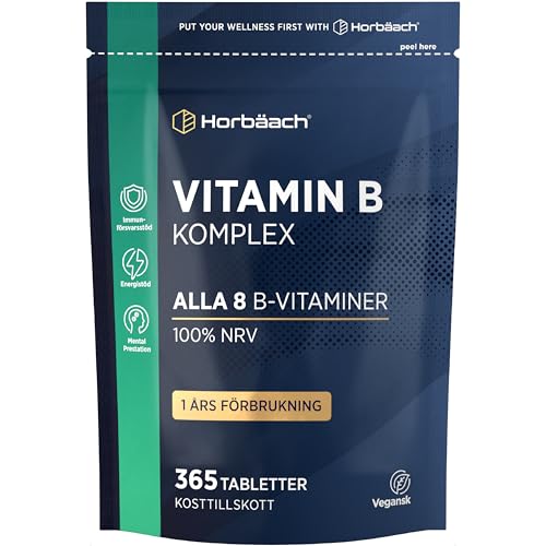 Vitamin B Complex High Dose | 365 Veganska Tabletter | 1 års Förbrukning | Komplett B-vitaminkomplex med Vitamin B1, B2, B3, B6, B12, Folsyra och Kolin | Hög Dos | av Horbaach