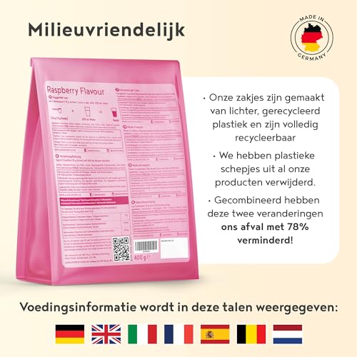 Alpha Foods Kollagenpulver med elastin och hyaluronsyra - kollagen hydrolysat peptider typ I, II och III - hallon - 400 gram kollagen