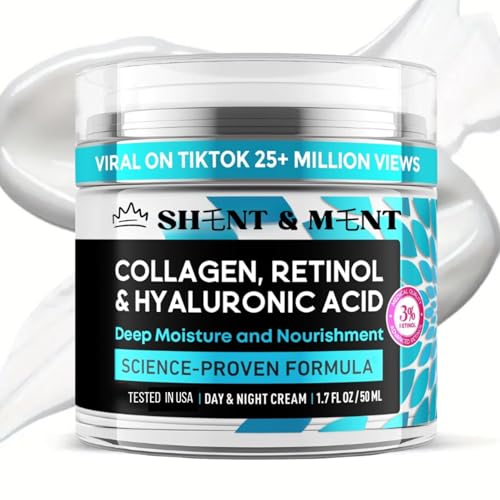 SHENT & MENT Retinolkräm 3 % Anti-Age Ansiktskräm Kollagen Hyaluronsyra Peptider Mot Rynkor Slapp Hud Pigmentfläckar Dag Natt Mogen Känslig Hud Utan Parabener Silikon 50ml