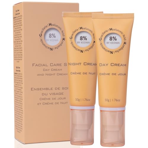 8% - Set med Återfuktande Dag- och Nattkrämer - Hyaluronsyra, Kollagen och Kombucha - Anti-aging och Lyster - Alla hudtyper - Fri från parabener, sulfater och silikoner - 2x50g