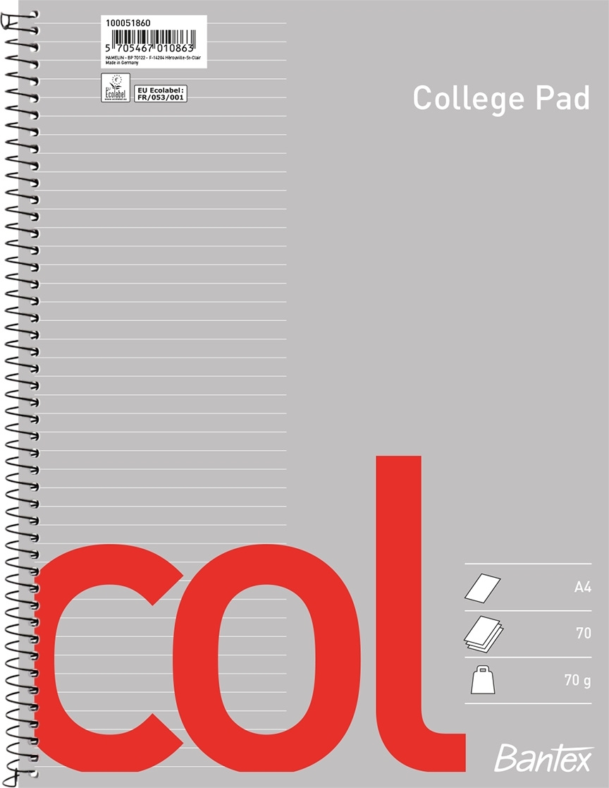 Kollegieblock Bantex Recycled Linjerat 70 Blad A4+ 70g