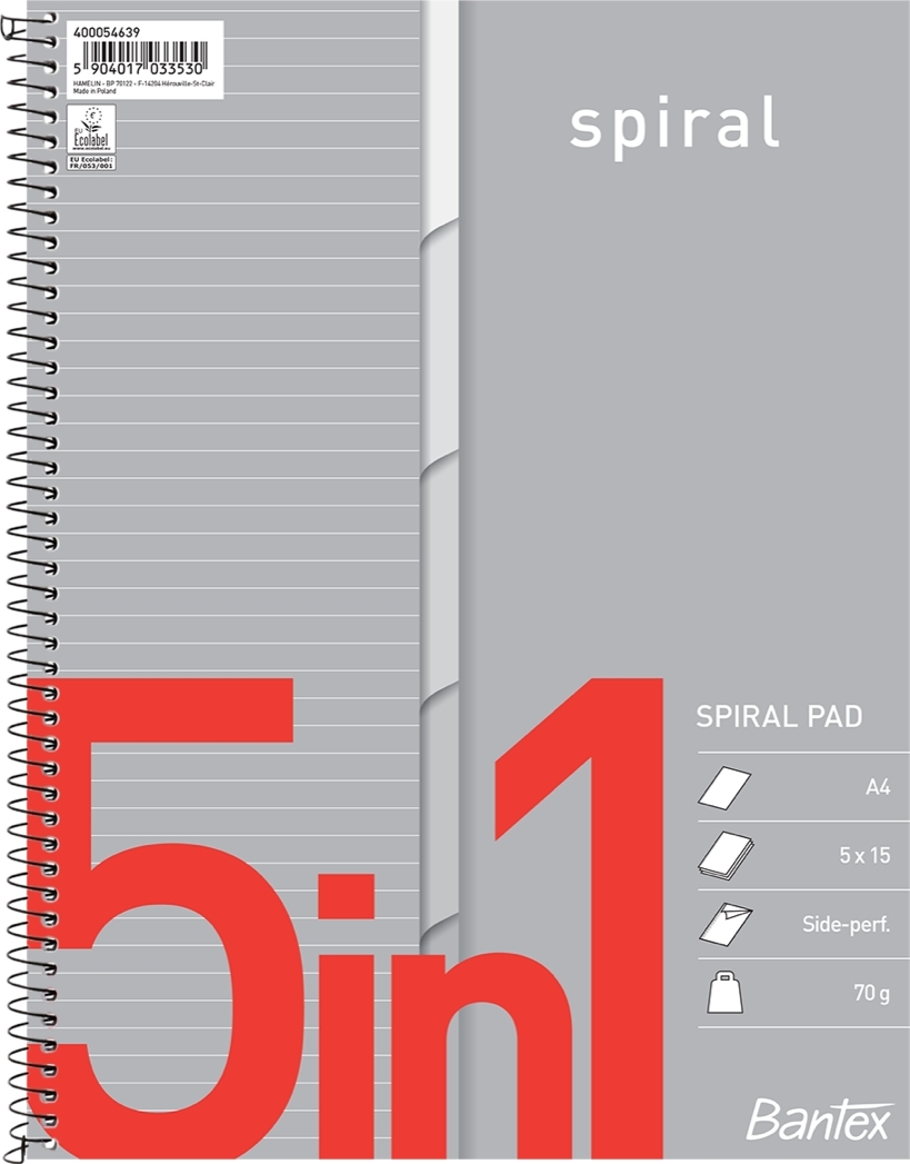 Bantex 5in1 Kollegieblock, A4+, linjerat