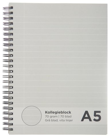 Kollegieblock A5 linjerat - grå inlaga/vita linjer