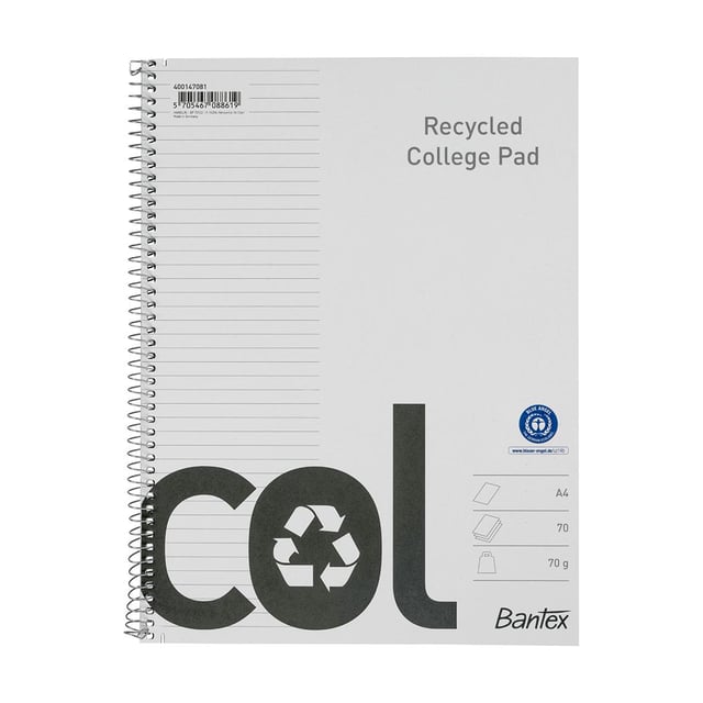 Kollegieblock Bantex Recycled Linjerat 70 Blad A4+ 70g