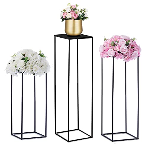 Nuptio Svart Vas för Bröllopsarrangemang 3 Stycken Höga Vaser Växtställning Stora Blomvaser Metall Display Bord Kolonn Geometriska Centrumbitar för Födelsedagsfester Hemmet (60cm/80cm/100cm)
