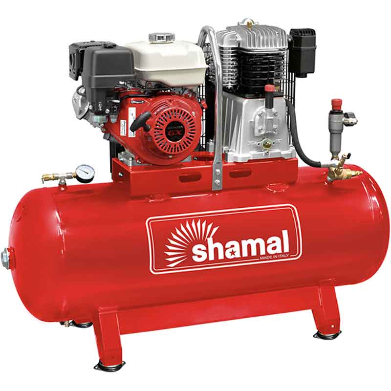 Bensindriven Kolvkompressor 11hk 756l/min 10bar 270 liter tank Honda GX340 Shamal.