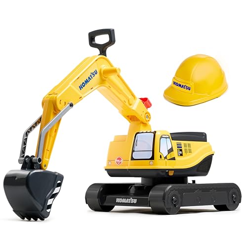 FALK - Grävmaskin - Komatsu - Grävmaskin och koppled, roterande hytt - hjälm ingår - tillverkad i Frankrike - 146 - Gul - Från 3 år