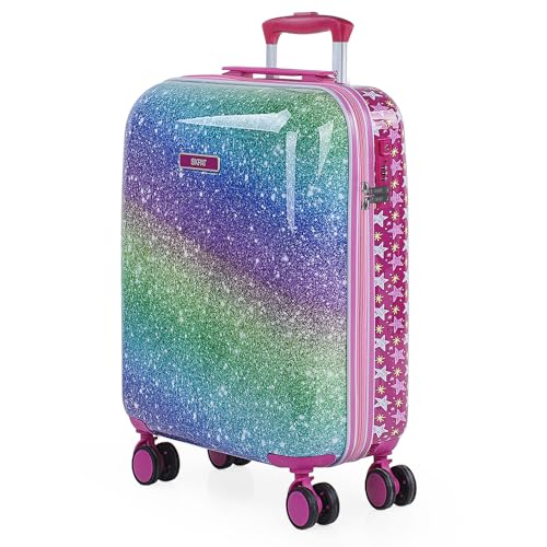 SKPAT - Barn Kabinväska med hjul och teleskophandtag - Childrens Carry-On Suitcase i lätt design - Godkänd för Ryanair. TSA Kombinationshänglås, Fuchsia