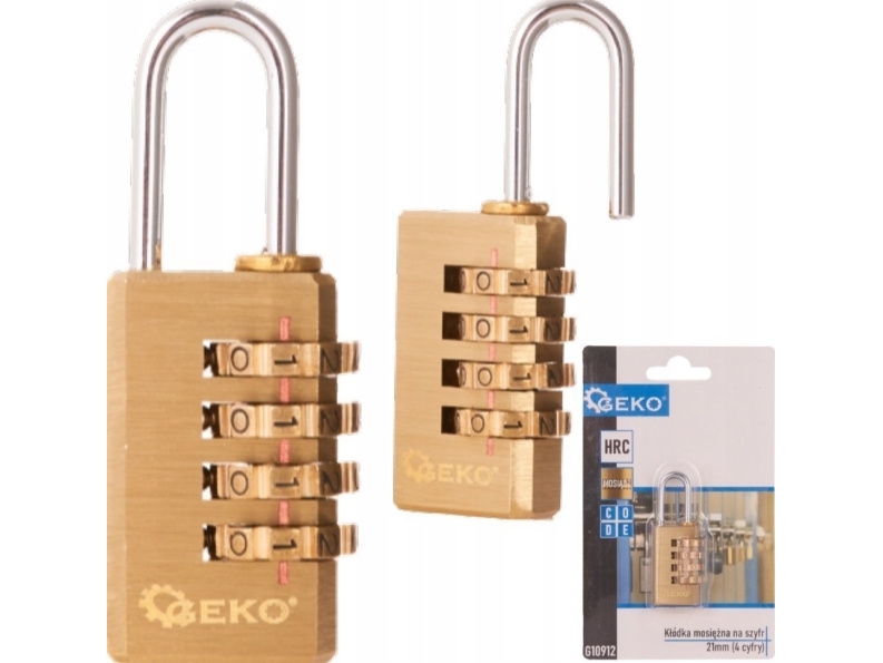 Geko 21 Mm Kombinationshänglås I Mässing (4 Siffror) (12/144)